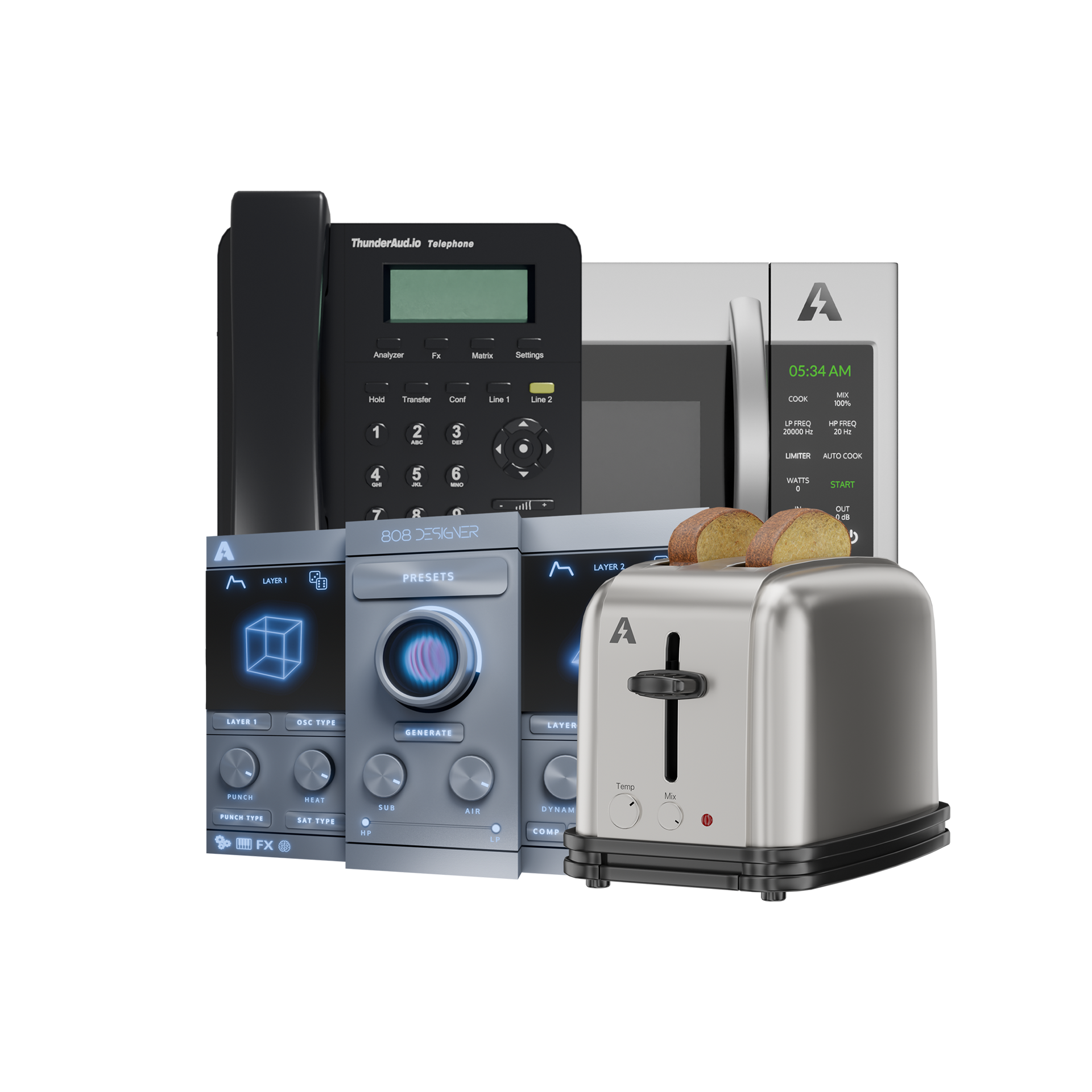 Transform your productions with the complete Thunder Audio experience β featuring Telephone, Microwave, 808 Designer, and Toaster.